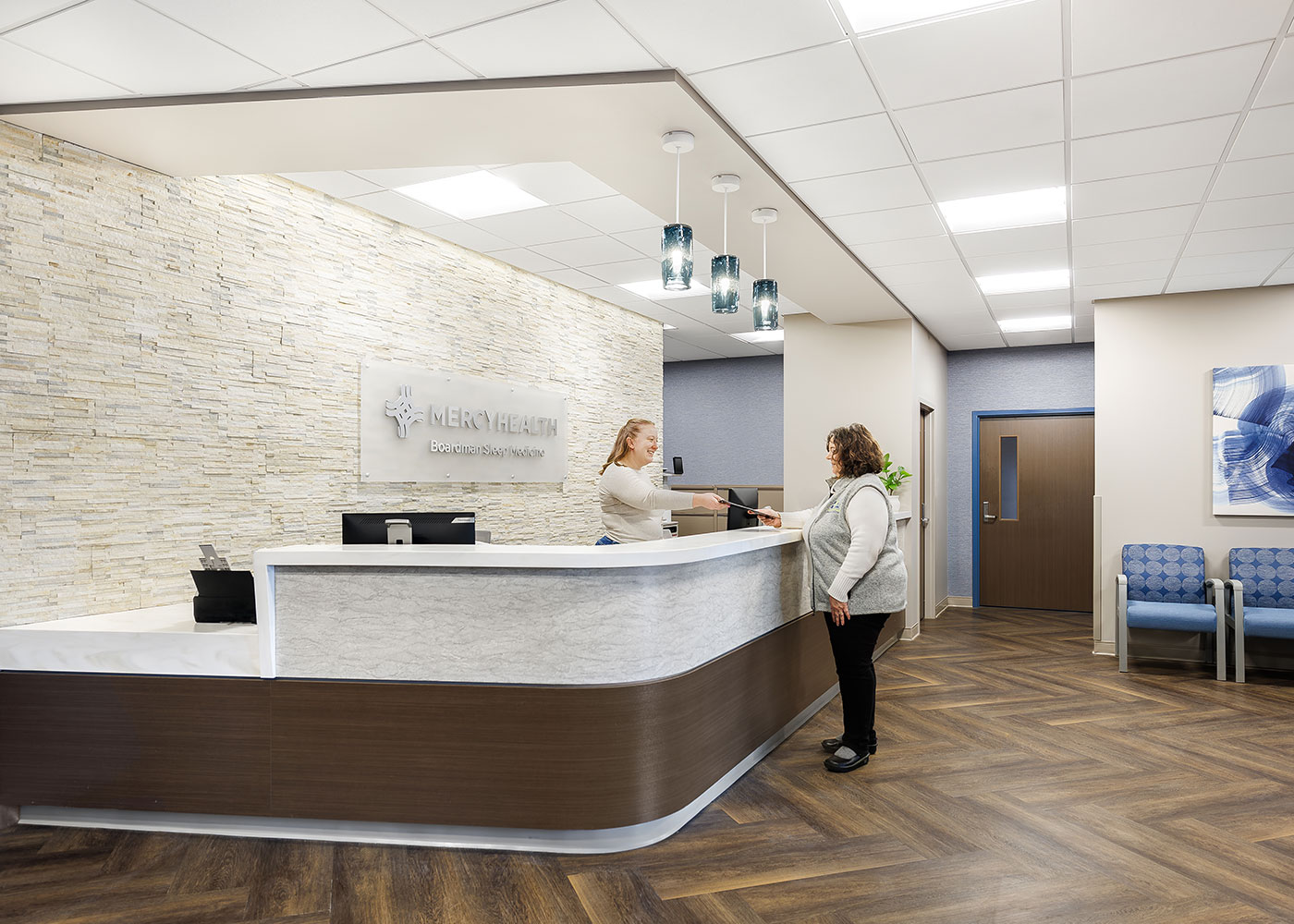 The facility combines services under one roof, providing dedicated space for both the sleep lab and a physician’s practice. A shared waiting area helps optimize space and facilitate patient flow.